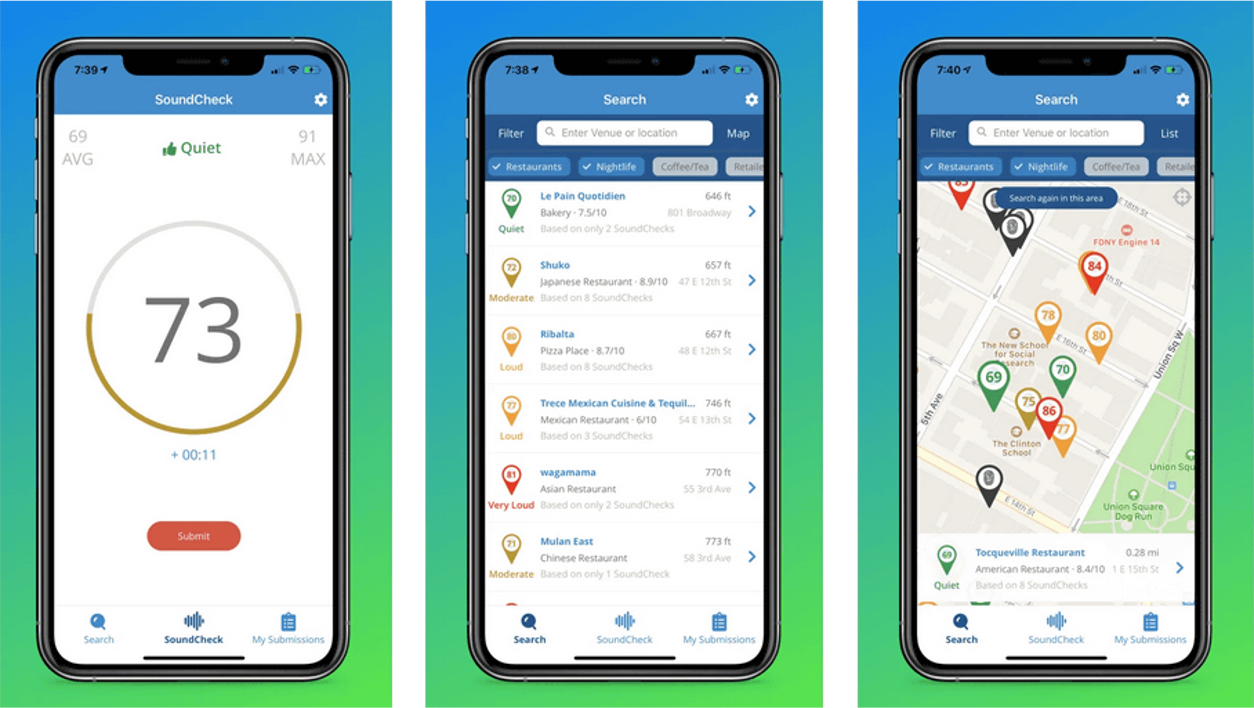 To conclude our enlightening conversation, we asked Gregory what we can expect from SoundPrint over the next couple of years. “We expect to grow the database significantly and into Europe and other countries and expand to more types of venues such as gyms and libraries. The main thing we want to work on is building up the platform to connect the venue managers with acoustical companies, such as designers and consultants, so that users can contact them when making a noise complaint and share the data from the sound check feature of the app.This will enable us to collect data as to whether the world is getting noisier and which areas are damaging hearing health. For example we were able to identify that in east Manhattan more than 50% of restaurants are damaging to the hearing health.”
