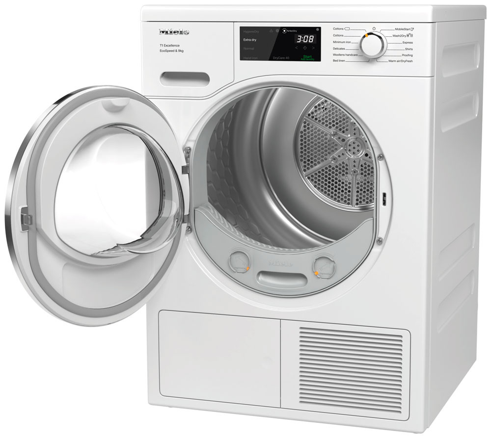 T1 heat-pump dryer: with DryCare 40 and SilenceDrum for quiet drying with maximum convenience.