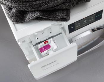 Gentle laundry care thanks to the Miele honeycomb drum: the hexagonal sculptured surface of the drum allows garments to glide on a thin film of water. Intelligent washing with automatic load recognition: low load, less water and electricity consumption. CapDosing is the perfect addition for special applications by dispensing special detergents, fabric conditioners and additives using portioned capsules.