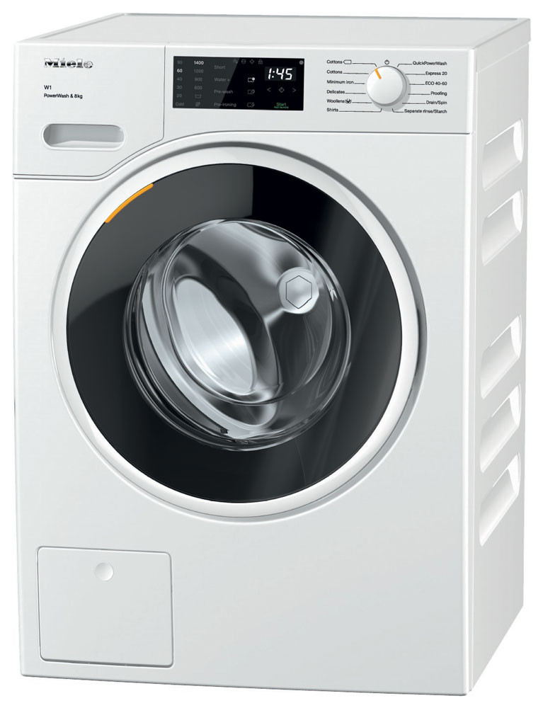 • W1 Front-loading washing machine best wash results in no time. Intelligent washing with automatic load recognition: low load, less water and electricity consumption. The best energy efficiency class with optimum wash results and short cycle times. The Miele ProfiEco EnergySave motor is economical, powerful, long-lasting and quiet.