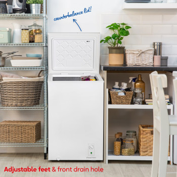 • This Russell Hobbs compact chest freezer is perfect if you need extra freezer space, but short on space in your home. With an impressive 99L of storage, you can easily free up some room in your main freezer. This freezer is suitable for your garage, outhouse or shed, keeping it out of your main kitchen space.